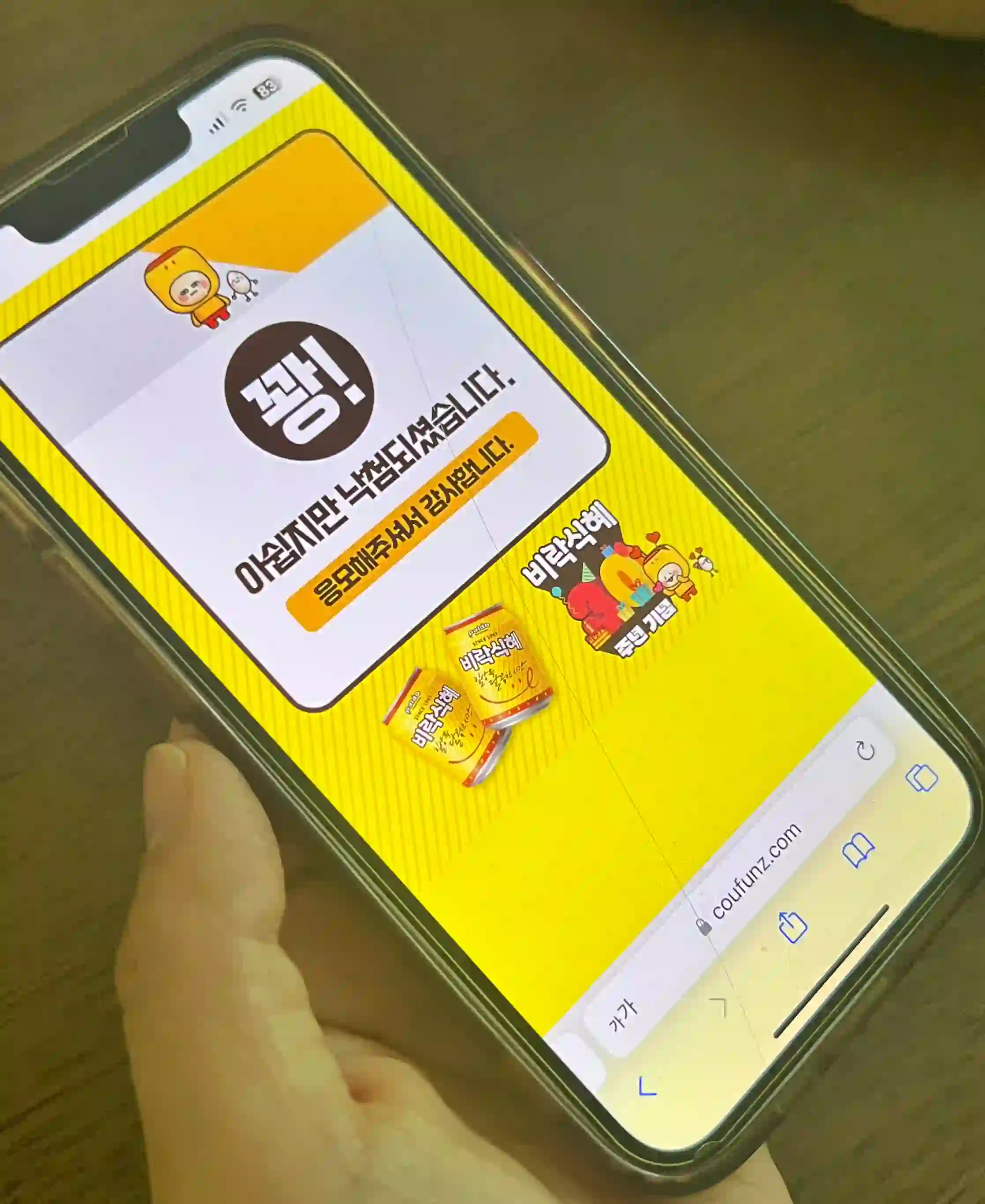 응모방법 3. 응모하기 버튼을 눌러 응모! 당첨 여부는 즉석에서 확인 가능~!
