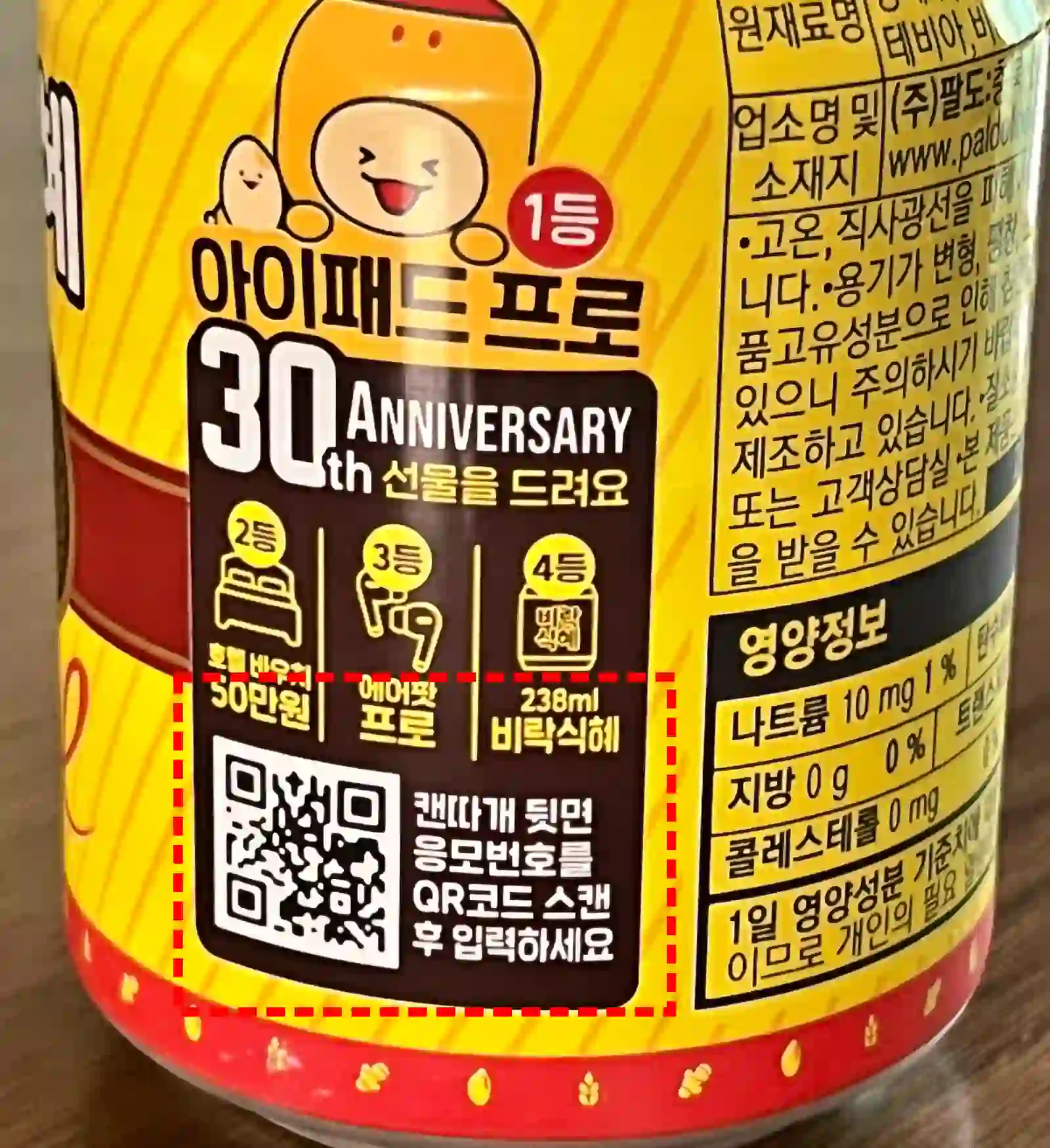 응모방법 1. 30주년 비락식혜(238ml 캔만 해당) 구매하고, 캔에 있는 QR코드 스캔 하기.