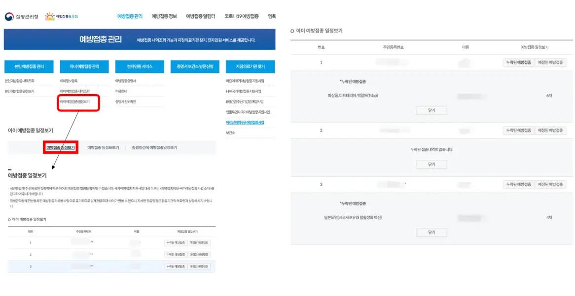 자녀 예방접종 내역 예방접종통합관리시스템 확인 및 등록 방법