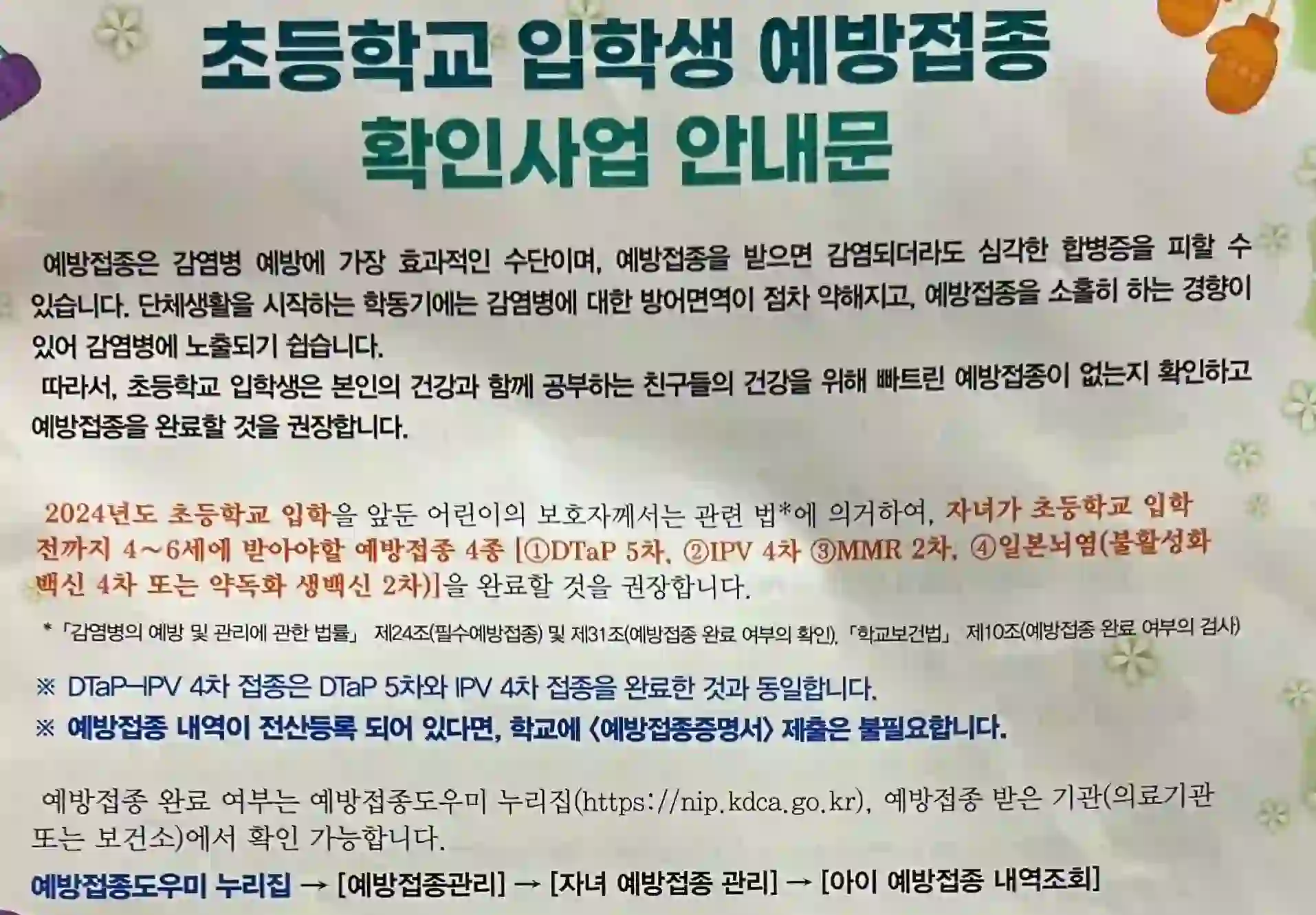 예방접종 확인사업 안내문