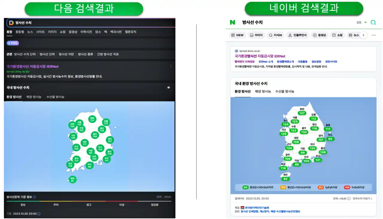 포털사이트에서 방사선 수치 검색 방법 안내